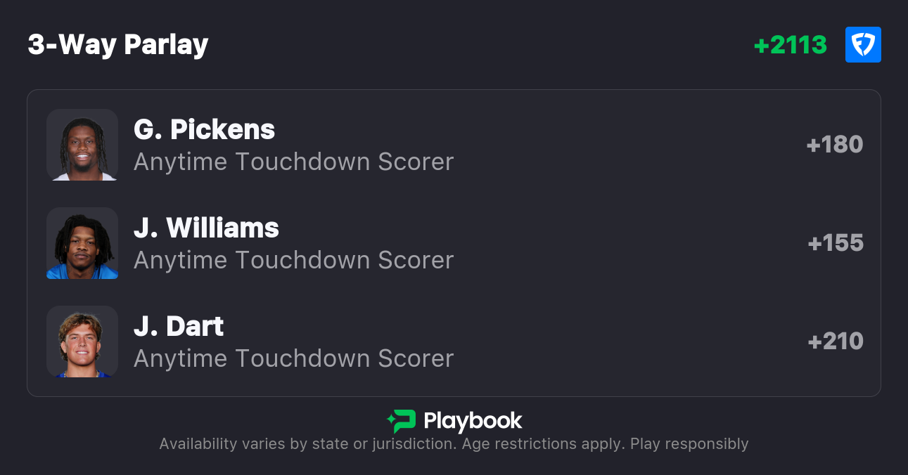 - George Pickens Anytime Touchdown Scorer (+180, FanDuel)