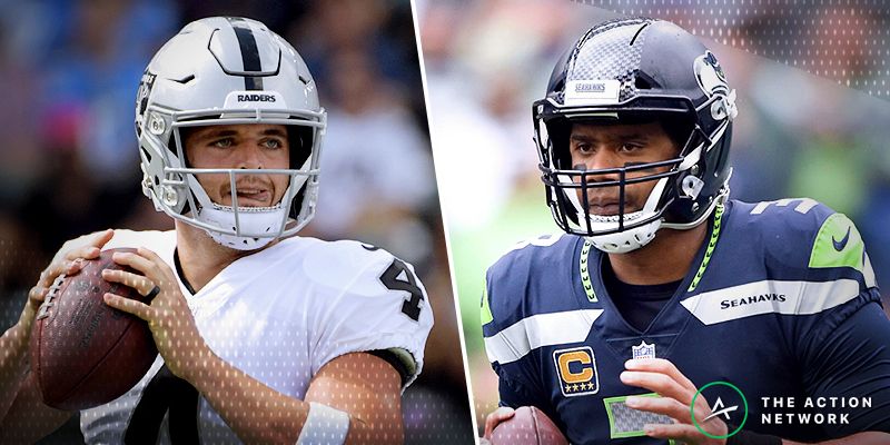 The over/under has already moved since opening at 47 points, but I’ll still pound the over with two (mostly) capable offenses taking on defenses that are shells of their former selves without superstars Khalil Mack and Earl Thomas.