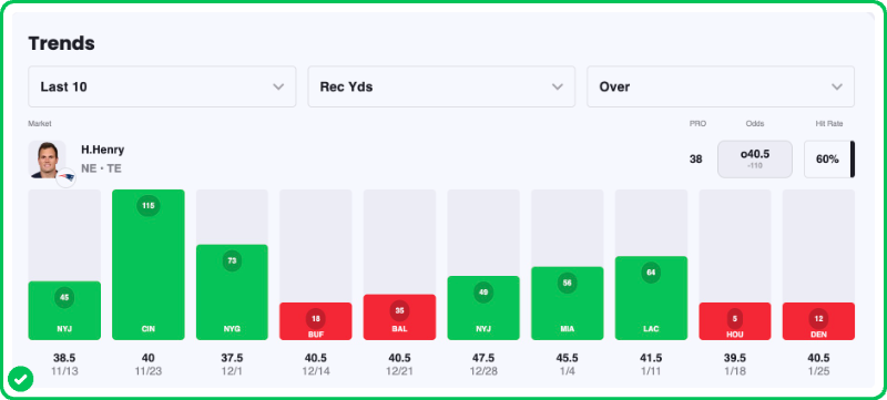 Pick: Hunter Henry Over 39.5 Receiving Yards (-112)