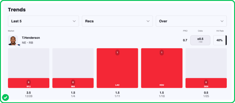 Pick: TreVeyon Henderson Under 0.5 Receptions (+140)