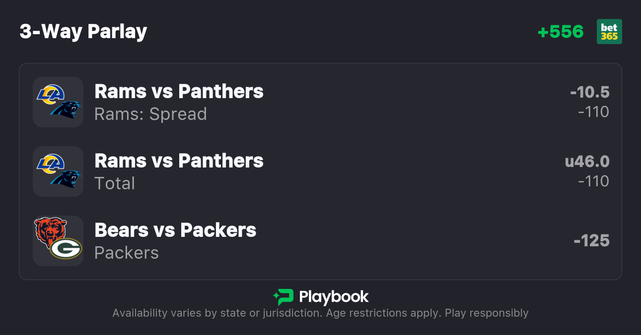 First, we'll target Rams vs. Panthers in the early window, followed by our best bet for Packers vs. Bears later in the evening.