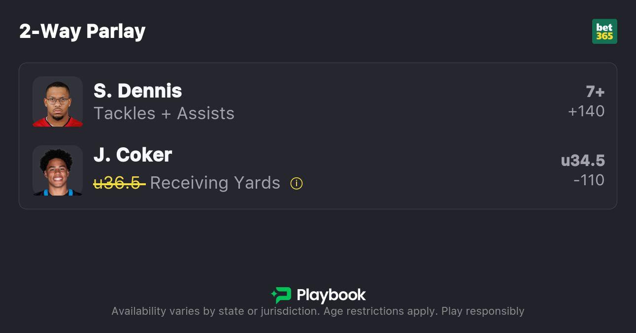 Tonight, I'm targeting Bucs LB SirVocea Dennis and Panthers WR Jalen Coker in the prop market for Panthers vs Buccanneers. Find my over/under prop bets for both Dennis and Coker below — and check back later for my picks for Seahawks vs 49ers.