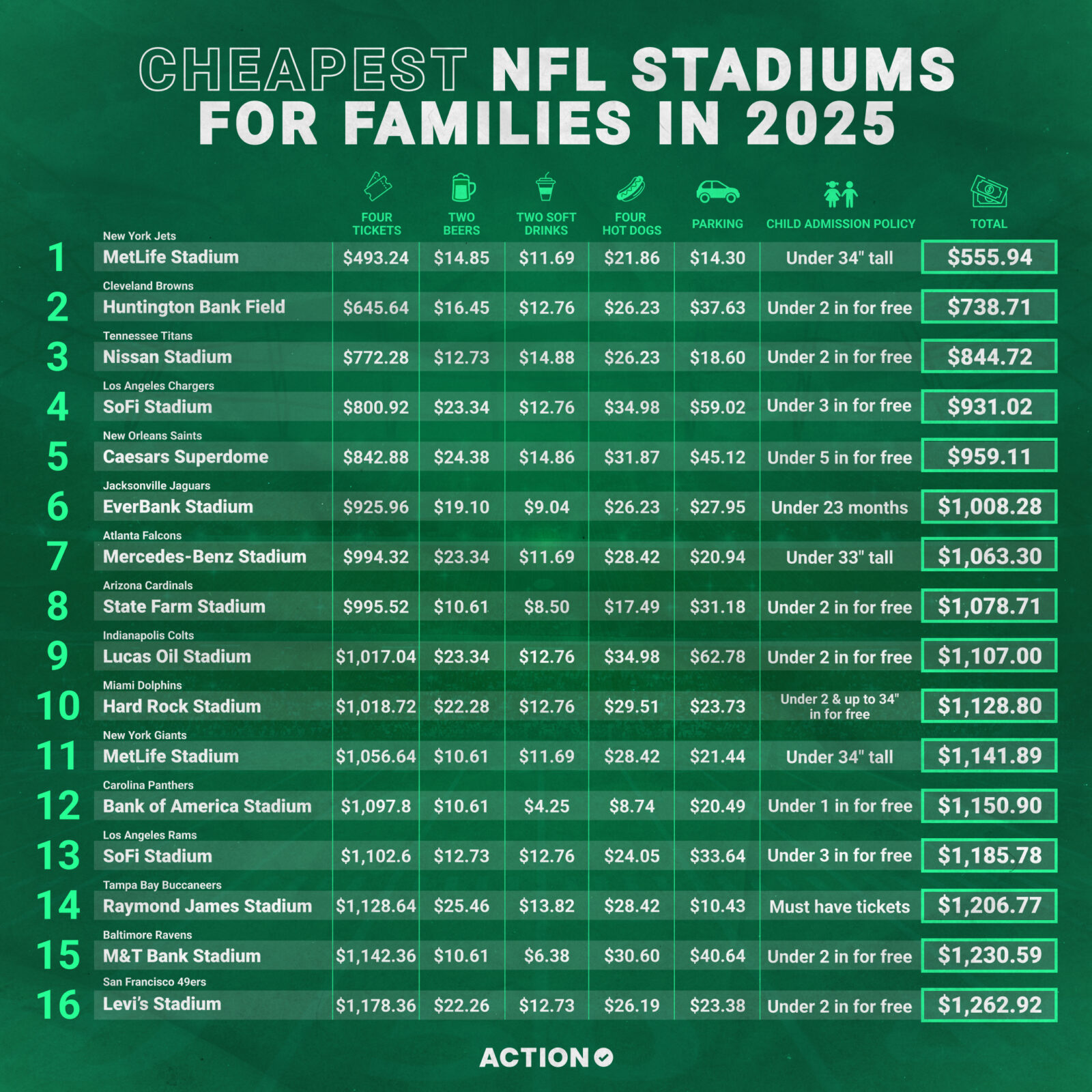 You can view the complete dataset used for this analysis here: NFL Stadium Costs for Families 2025 | Action Network