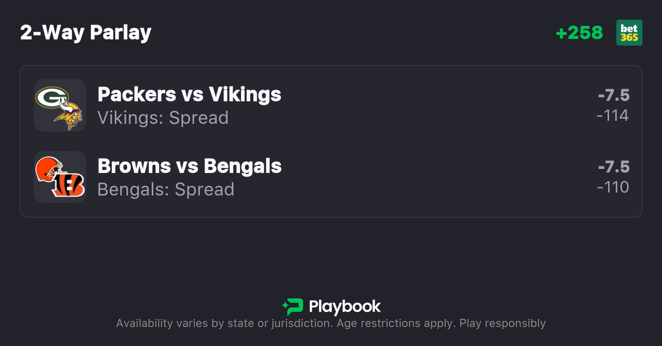 For NFL Week 18, I'm on my two favorite sides for Bengals vs Browns and Packers vs Vikings.