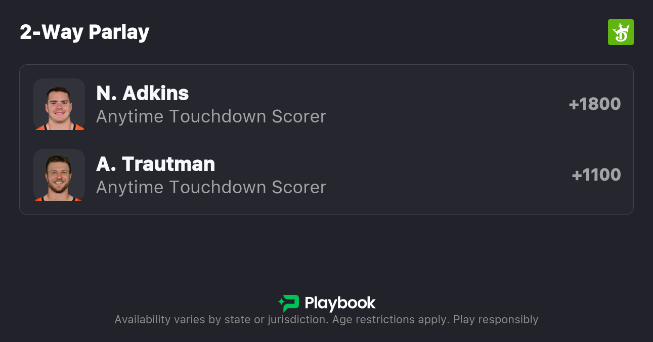 - Nate Adkins Anytime Touchdown (+2500; DraftKings)