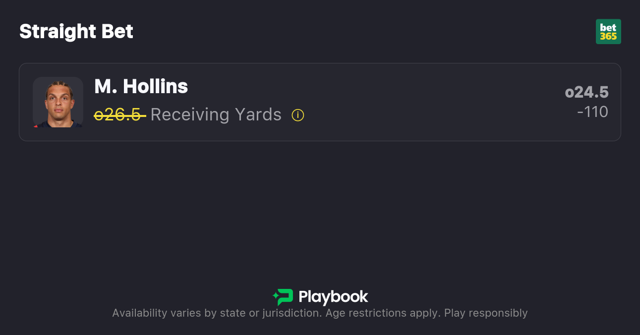 Pick: Mack Hollins Over 24.5 Receiving Yards