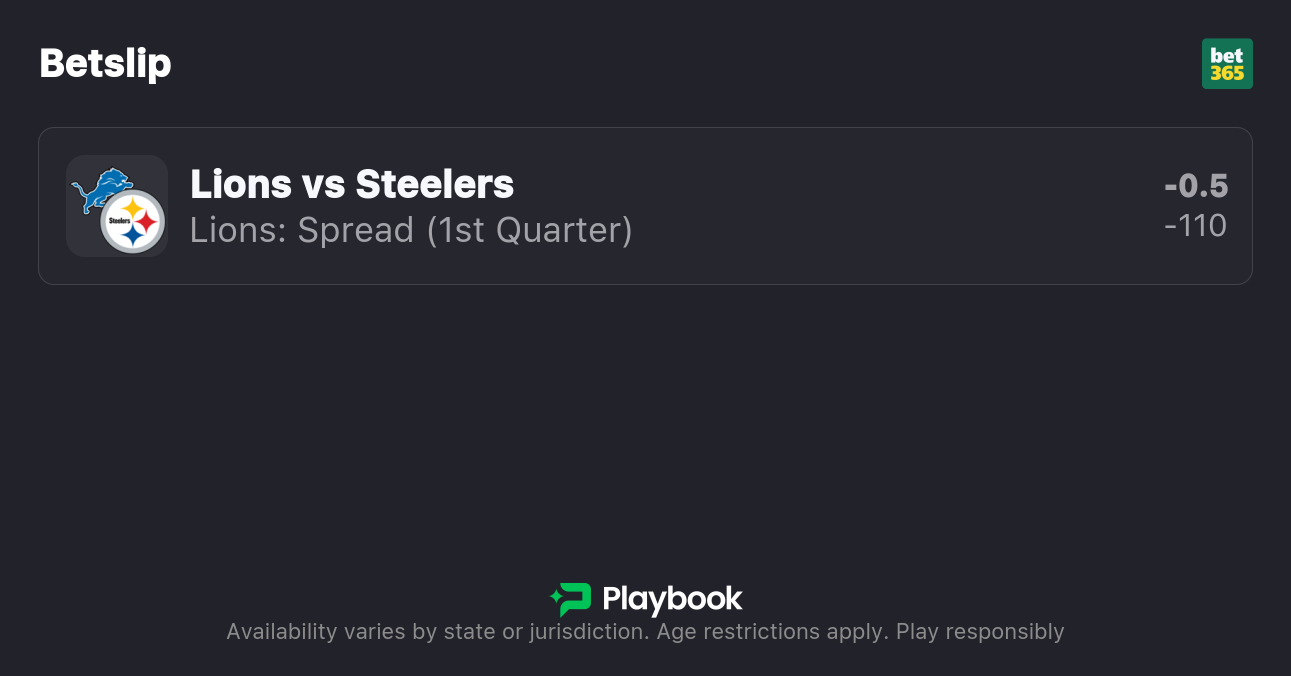 - Steelers vs Lions pick: Lions 1st Quarter Spread -0.5 (-106)