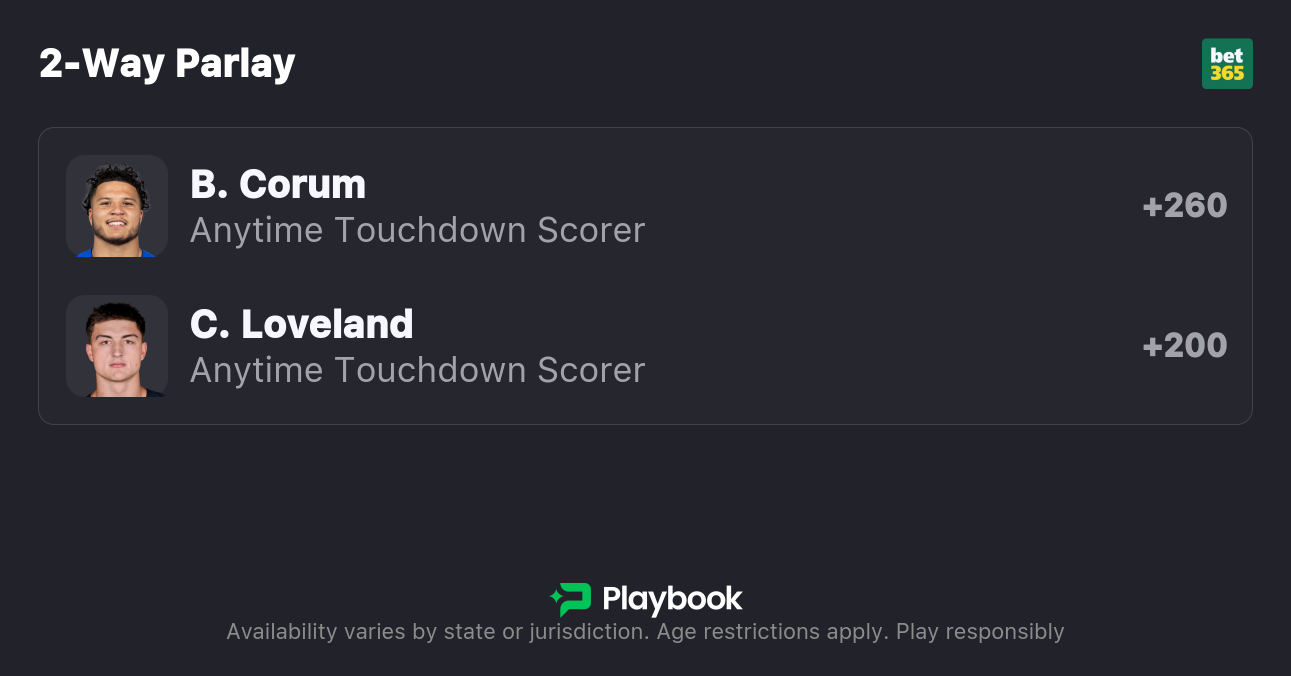 - Blake Corum Anytime Touchdown (+265; DraftKings)