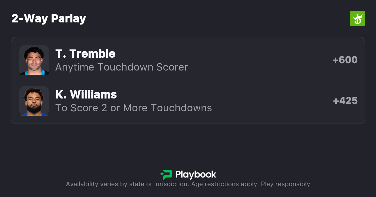 - Tommy Tremble Anytime Touchdown (+650; DraftKings)