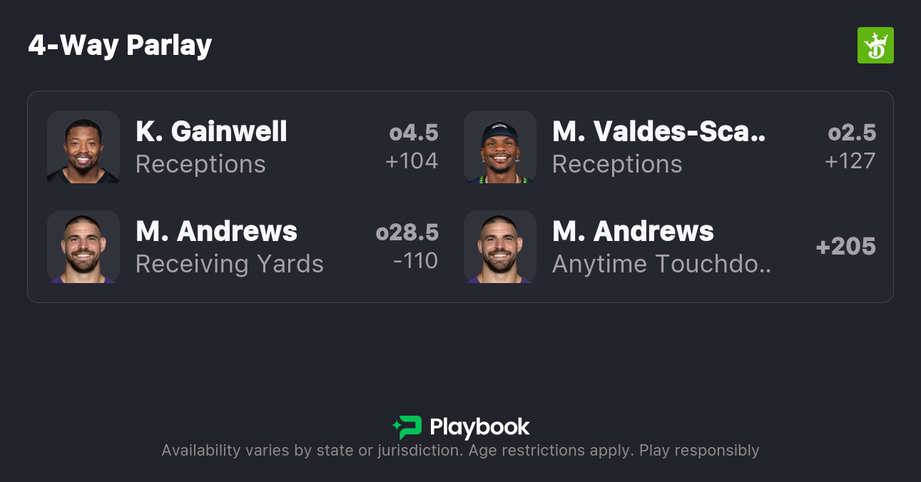 There’s always the risk of Isaiah Likely eating into targets, but Andrews has the experience and has a solid floor with at least three targets per game, and often more, since the second week of the season.