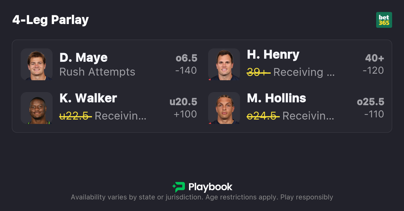 Seahawks vs Patriots Player Props for Drake Maye, Hunter Henry, Kenneth Walker, More article feature image
