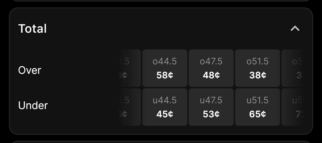 The Seahawks opened as a -2.5 point favorite over the Rams and are favored at 58 cents to win. Meanwhile, the Rams are priced at 43 cents on Fanatics Markets to pull off the upset. The total is set at over/under 47.5 total points scored.