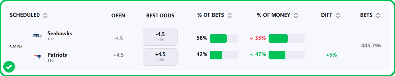 - Patriots vs Seahawks Spread: Patriots +4.5 (-105), Seahawks -4.5 (-115)