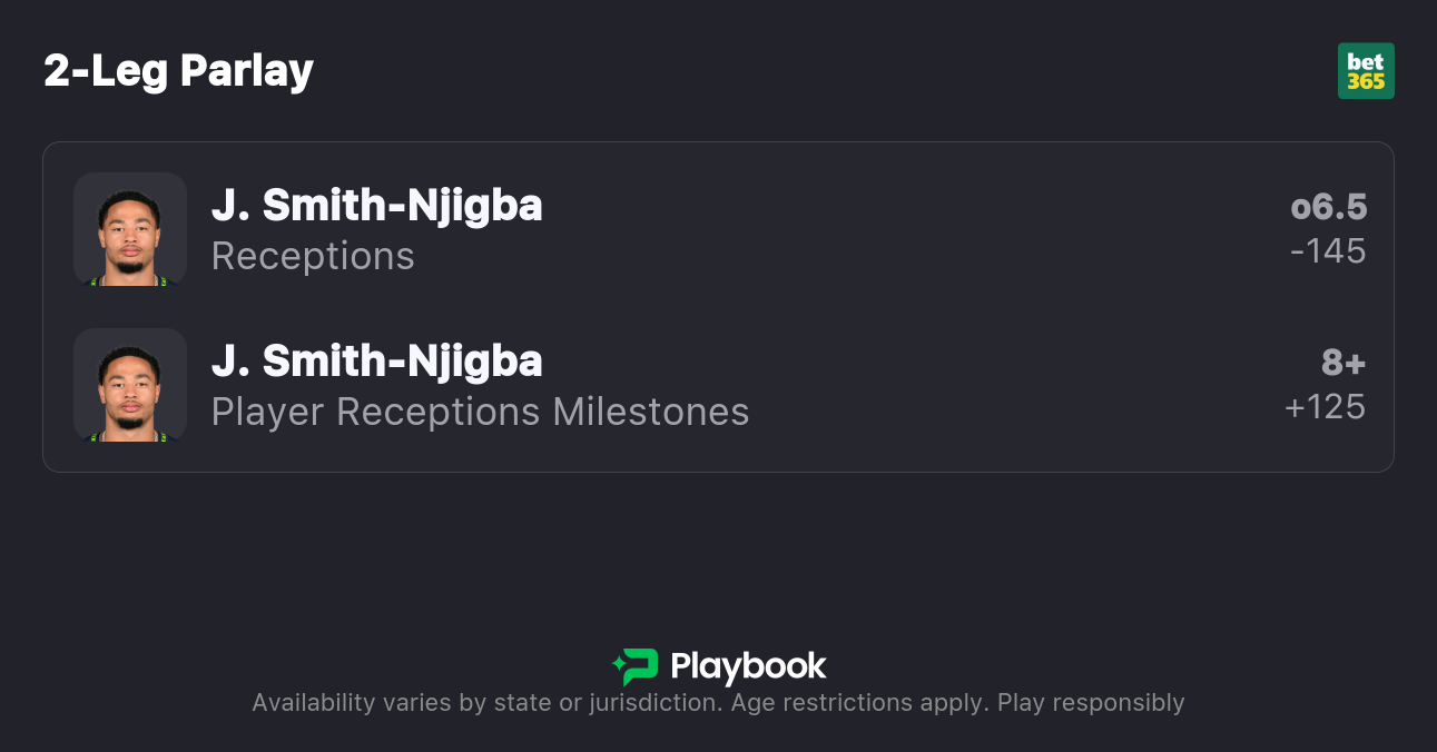 But what if Smith-Njigba has an even bigger game? He's racked up 123+ receiving yards seven times this season and has seven games with exactly eight catches and a few others with nine or 10.