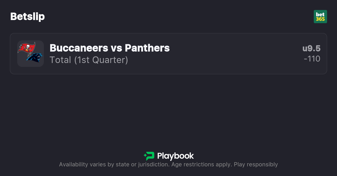 - Buccaneers vs Panthers pick: First Quarter Under 9.5 (-110)