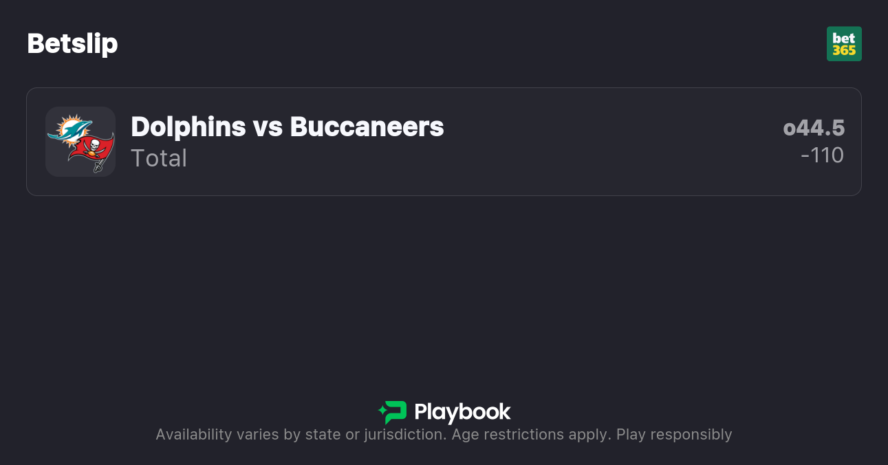 - Buccaneers vs Dolphins pick: Over 44.5 (-110)