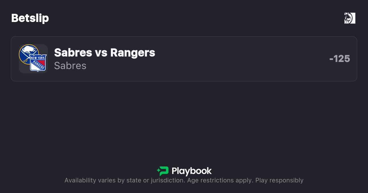 Sabres vs. Rangers Moneyline: Sabres -125, Rangers +105
