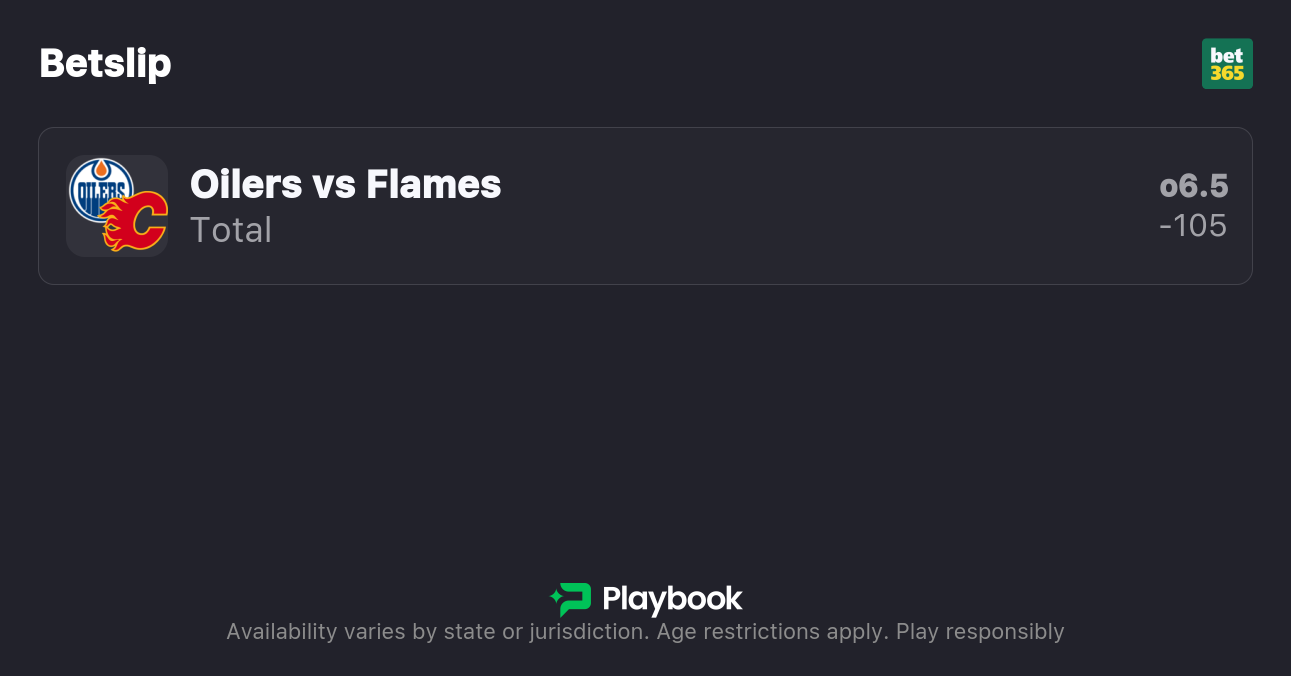 - Flames vs. Oilers Over/Under: 6.5 (-105o/-115u)