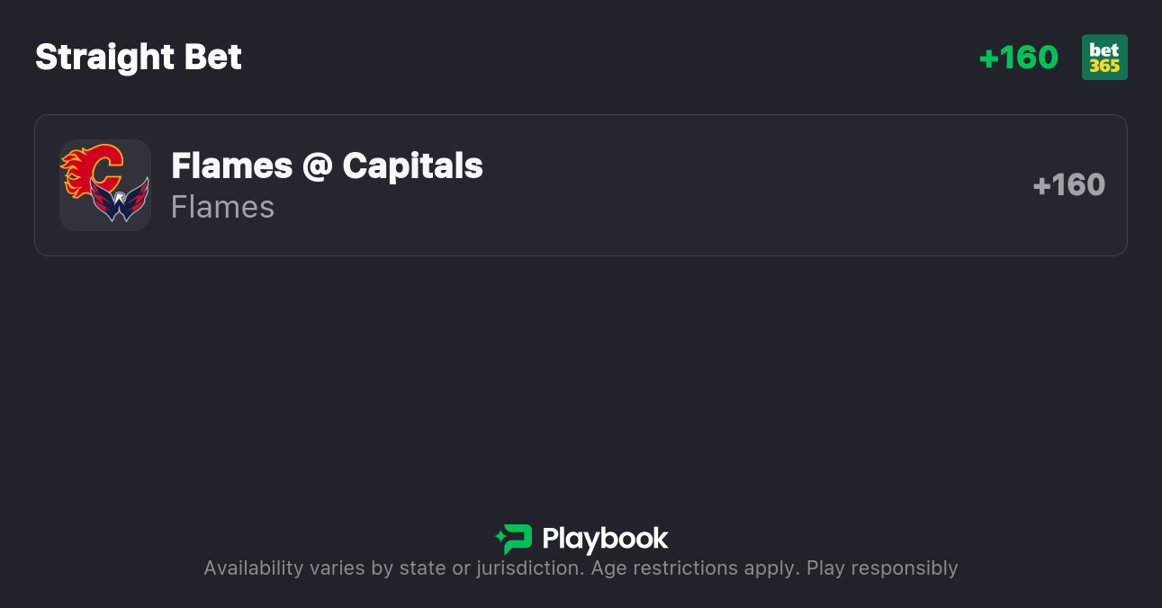 Flames vs. Capitals Moneyline: Flames +159, Capitals -191