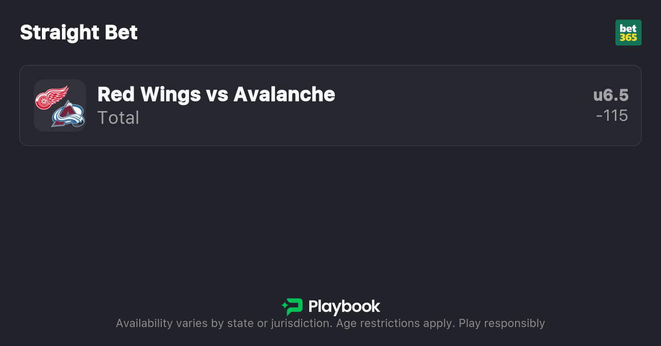 - Avalanche vs. Red Wings Over/Under: 6.5 (-105o / -115u)