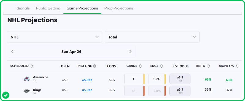 As a reminder, you can see all our NHL game projections with an Action PRO Subscription. Find our projected lines every day on the PRO Projections tab.