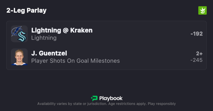 The Lightning are favored by -1.5 on the puck line, with the over/under set at 6.5 (-107o / -115u). The Lightning are a -191 favorite to win outright, while the Kraken are +159 to pull off the upset.