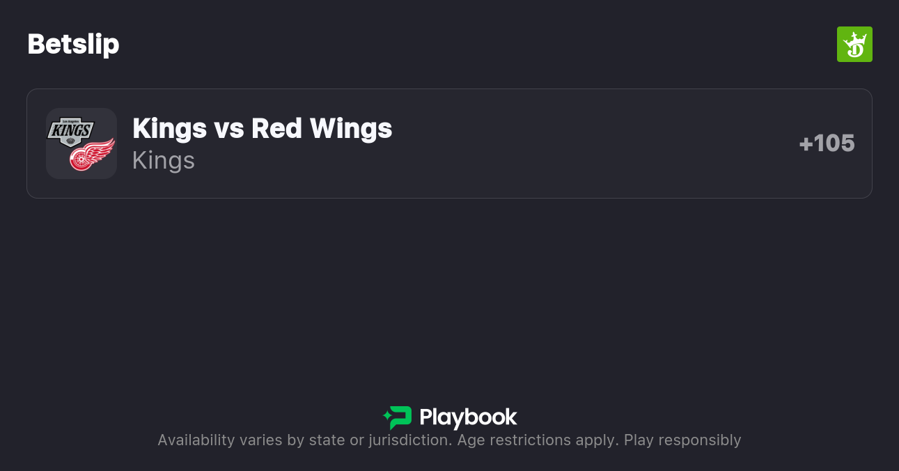 Kings vs. Red Wings Moneyline: Kings +105, Red Wings -125