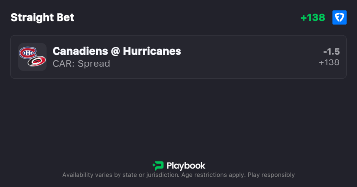 Pick: Hurricanes -1.5 (+138)