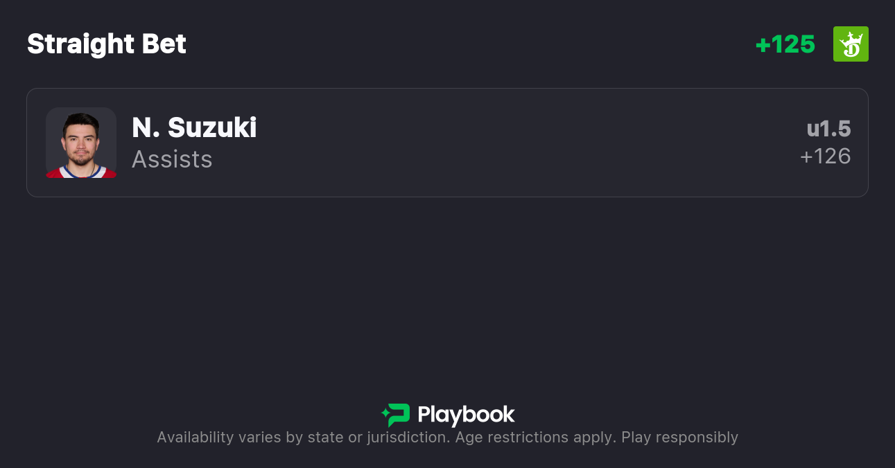 Best Bet: Nick Suzuki Under 1.5 Assists (+126, DraftKings)