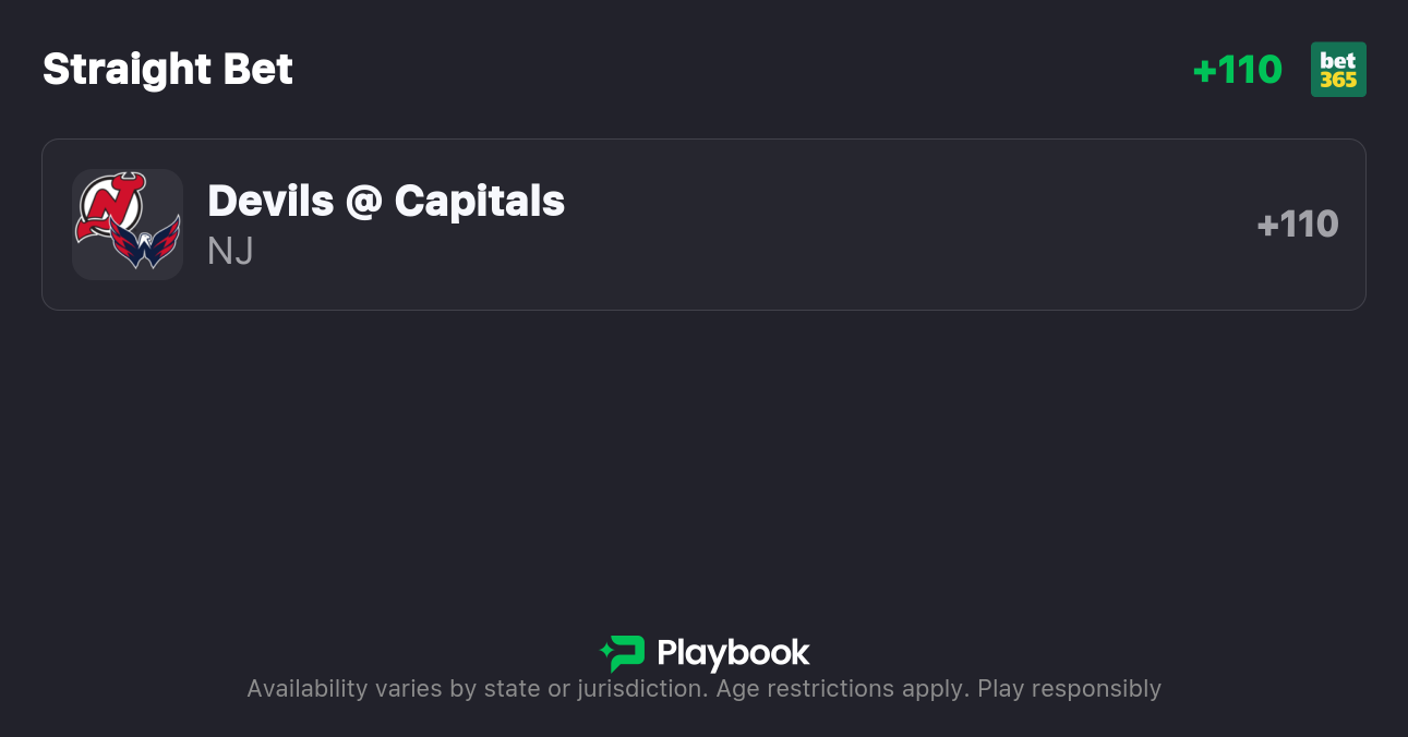 Devils vs. Capitals Moneyline: Devils +110, Capitals -130