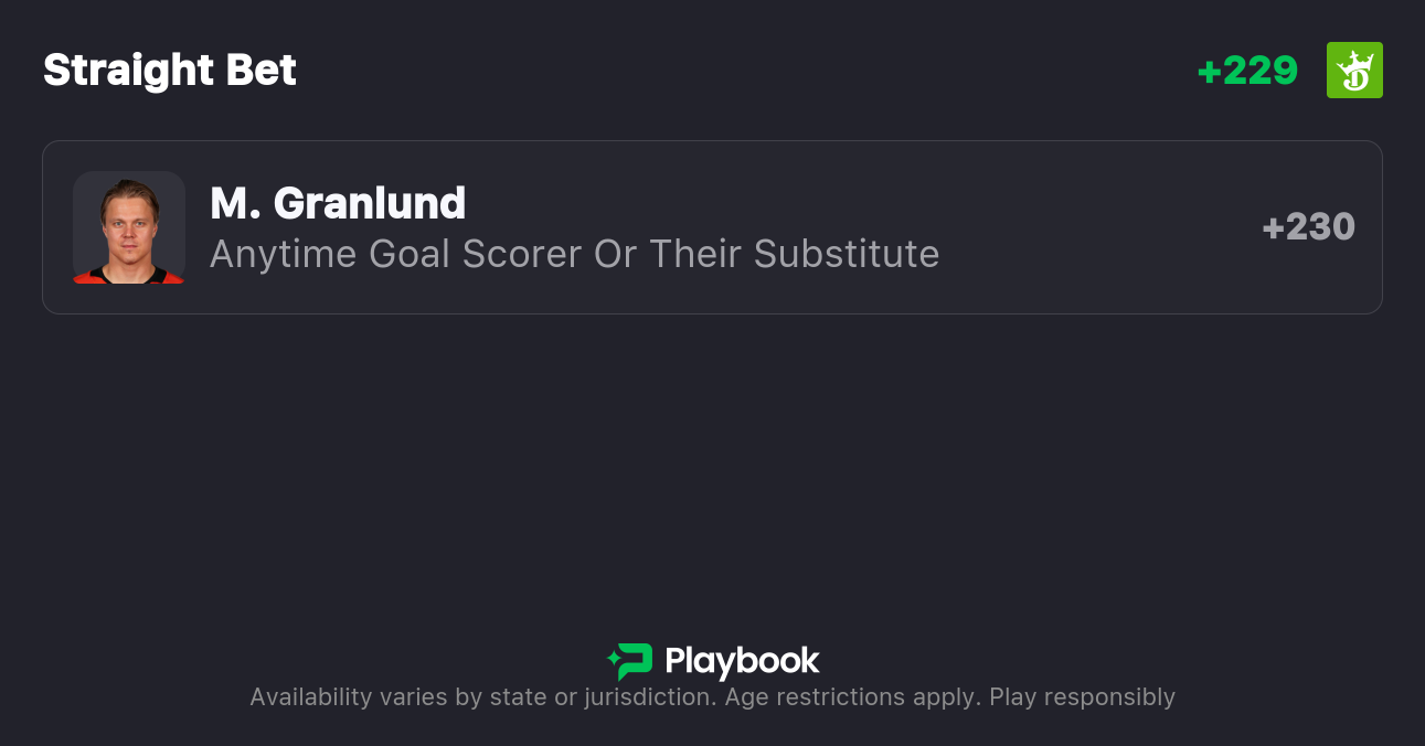Pick: Mikael Granlund Anytime Goal Scorer (+250)