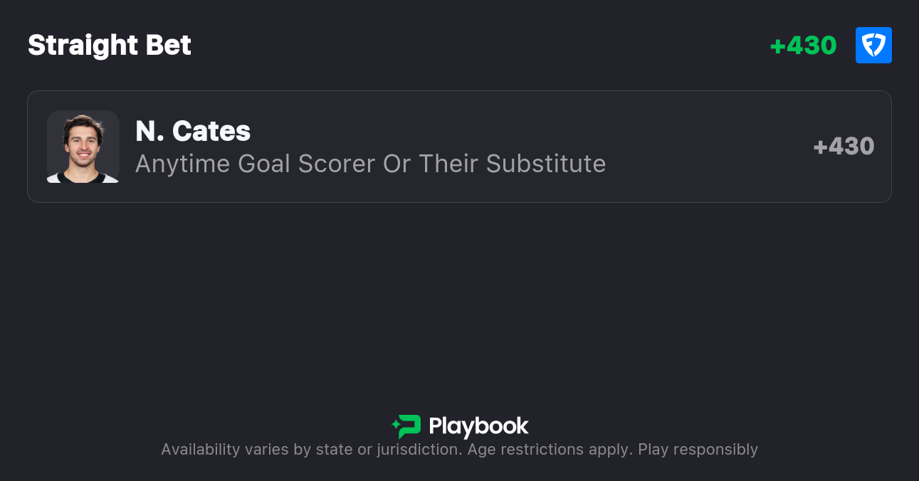 - Noah Cates Anytime Goal Scorer (+430, FanDuel)
