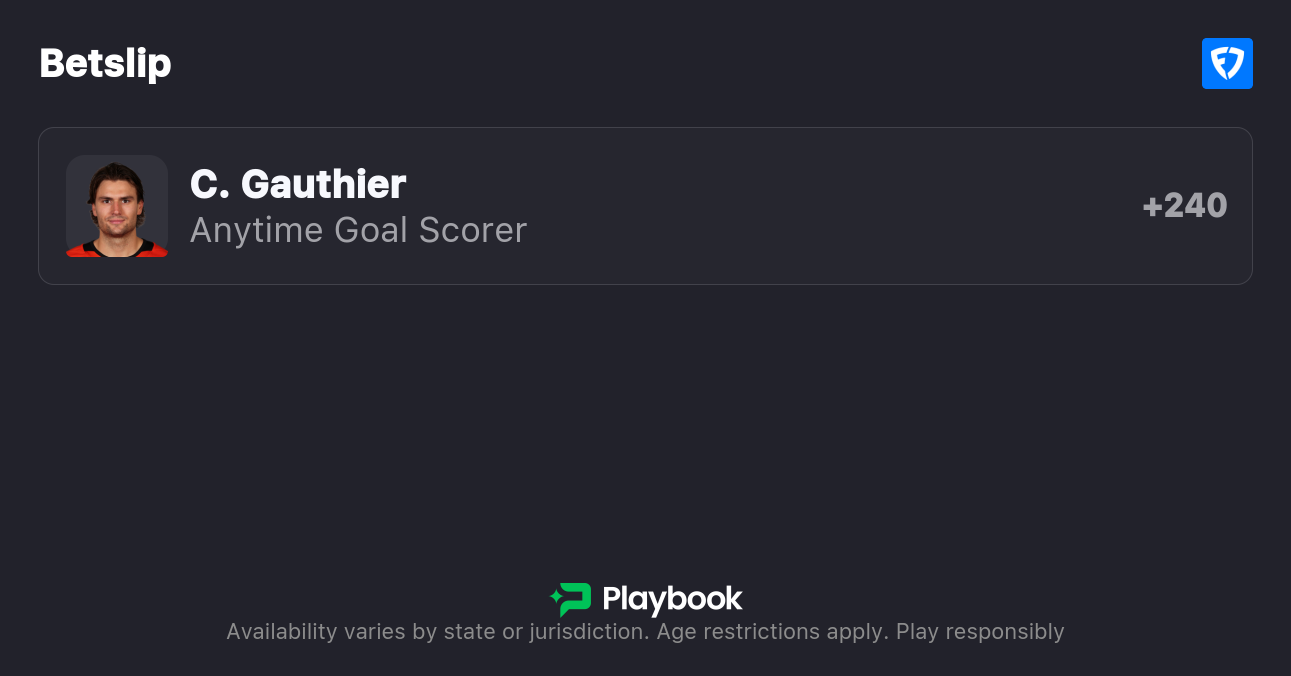 Pick: Cutter Gauthier Anytime Goal Scorer (+240)