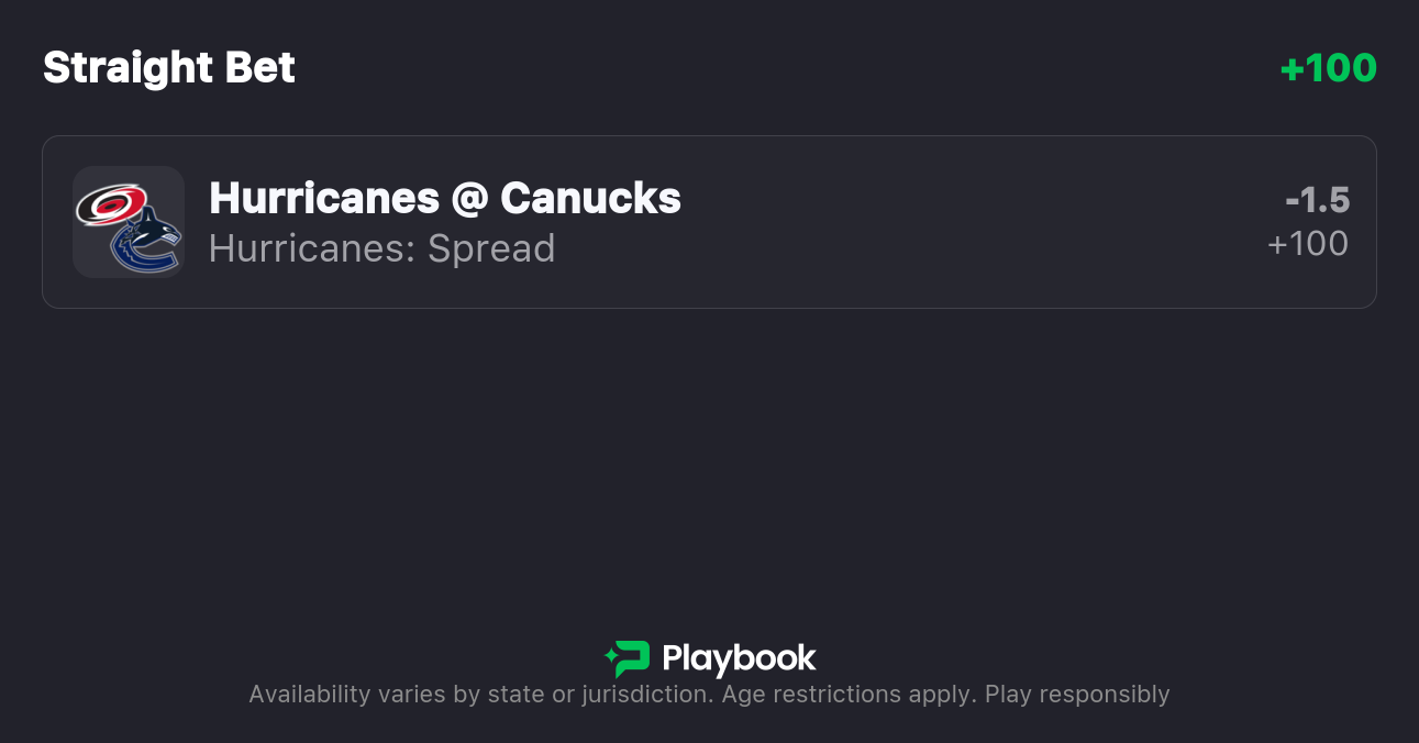 Pick: Hurricanes -1.5 (-109)