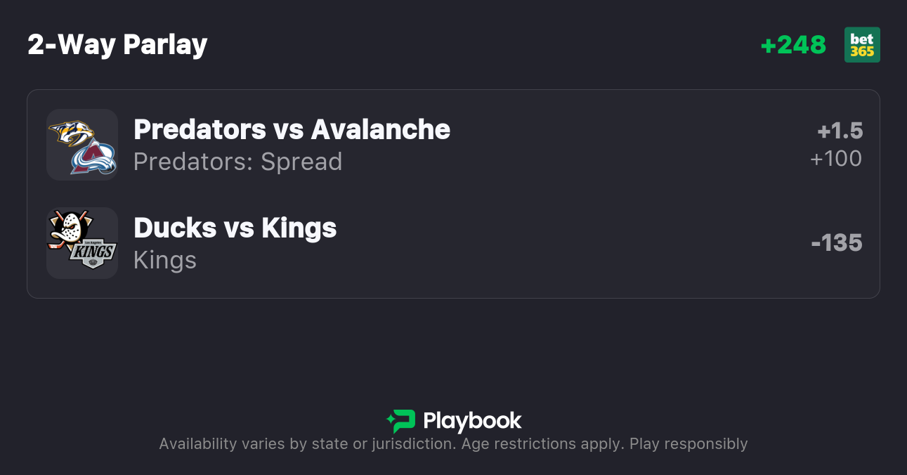 The Nashville Predators head over to the Rocky Mountains to face the Colorado Avalanche, while we also have a battle in Southern California between the Anaheim Ducks and the Los Angeles Kings.