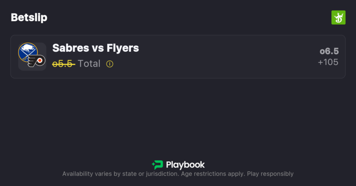 - Flyers vs. Sabres Over/Under: 6.5 (-125 / +105)