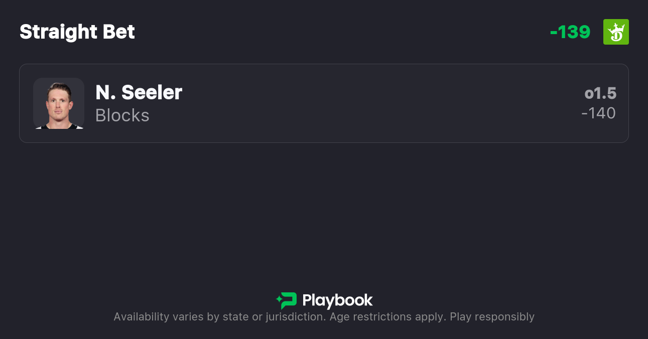 Best Bet: Nick Seeler Over 1.5 Blocks (-140, DraftKings)