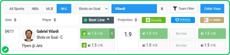 Action PRO projects Gabriel Vilardi for 1.9 shots on goal in the Jets' matchup against the Flyers tonight, giving us a 2.2% edge against the market when compared to his current prop line of over/under 1.5, which is good enough to mark the Over with a C- grade in our system.
