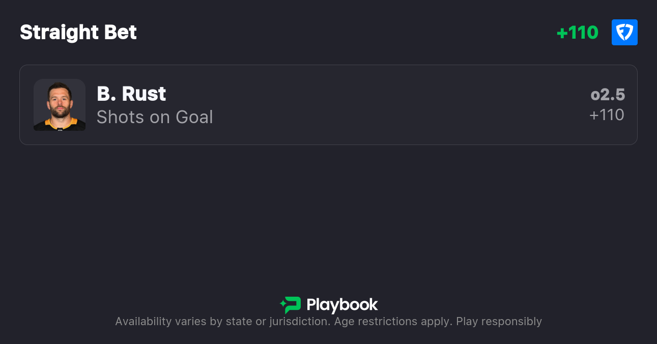 Rust has recorded eight shots on goal from 20 shot attempts in this series, and a price of +110 for him to record three shots looks appealing in this matchup.