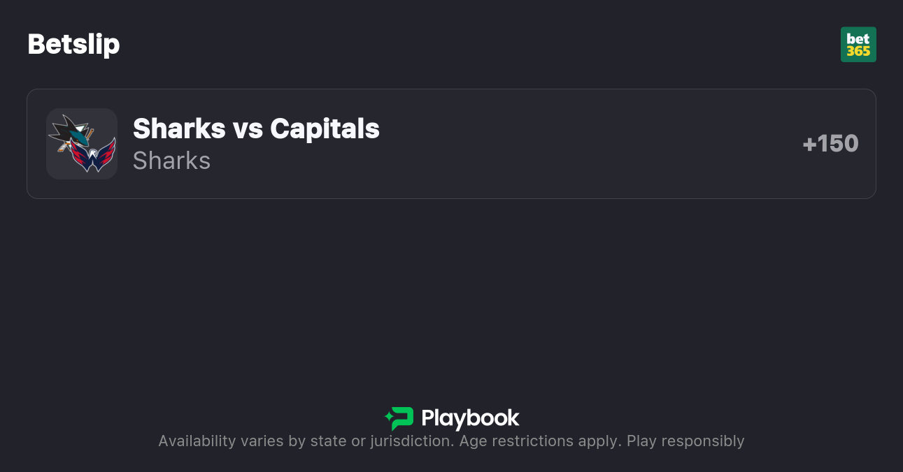 Sharks vs. Capitals Moneyline: Sharks +154, Capitals -185