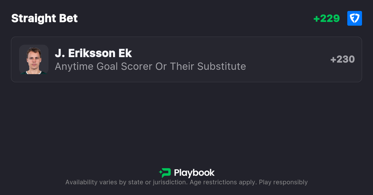 Pick: Joel Eriksson Ek Anytime Goal (+230, FanDuel)