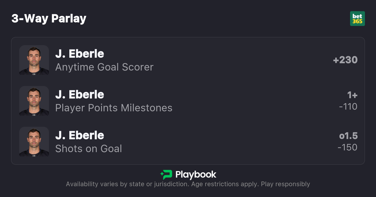 Pick: Jordan Eberle Anytime Goal Scorer (+230, .2u) | Jordan Eberle Over 0.5 Points (+110, .2u) | Jordan Eberle Over 1.5 Shots (-150, .5u) | 3-Leg Parlay: +1055 (.1u)
