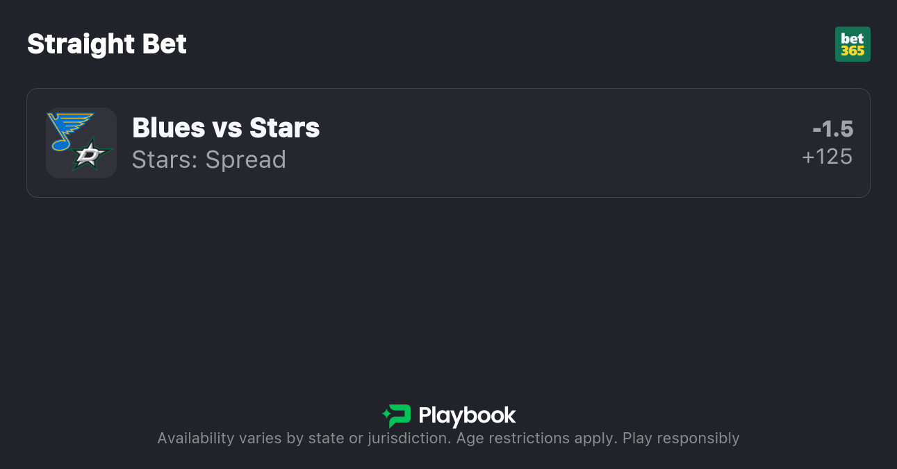 - Blues vs. Stars Spread: Blues +1.5 (-140), Stars -1.5 (+120)