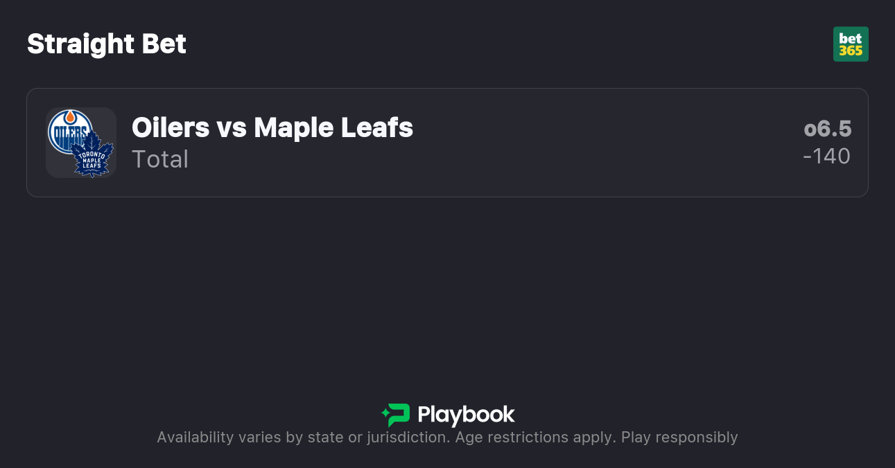 - Maple Leafs vs. Oilers Over/Under: 6.5 (-140o / +120u)