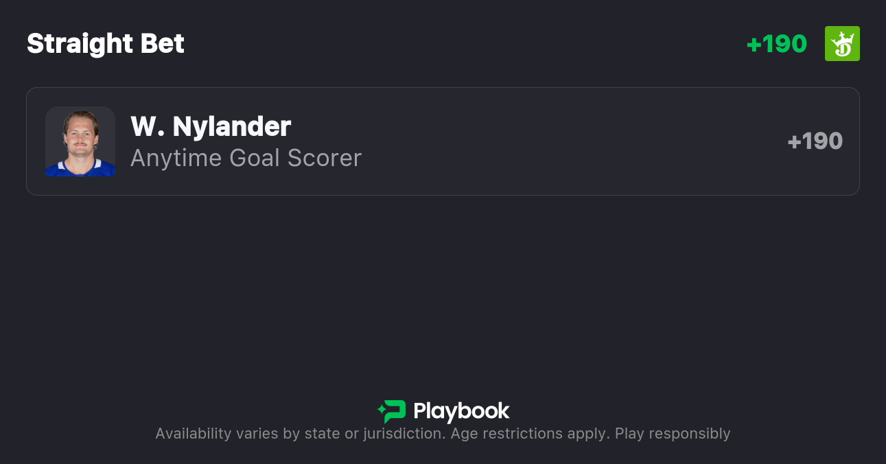 Pick: William Nylander Anytime Goal Scorer (+190, DraftKings)