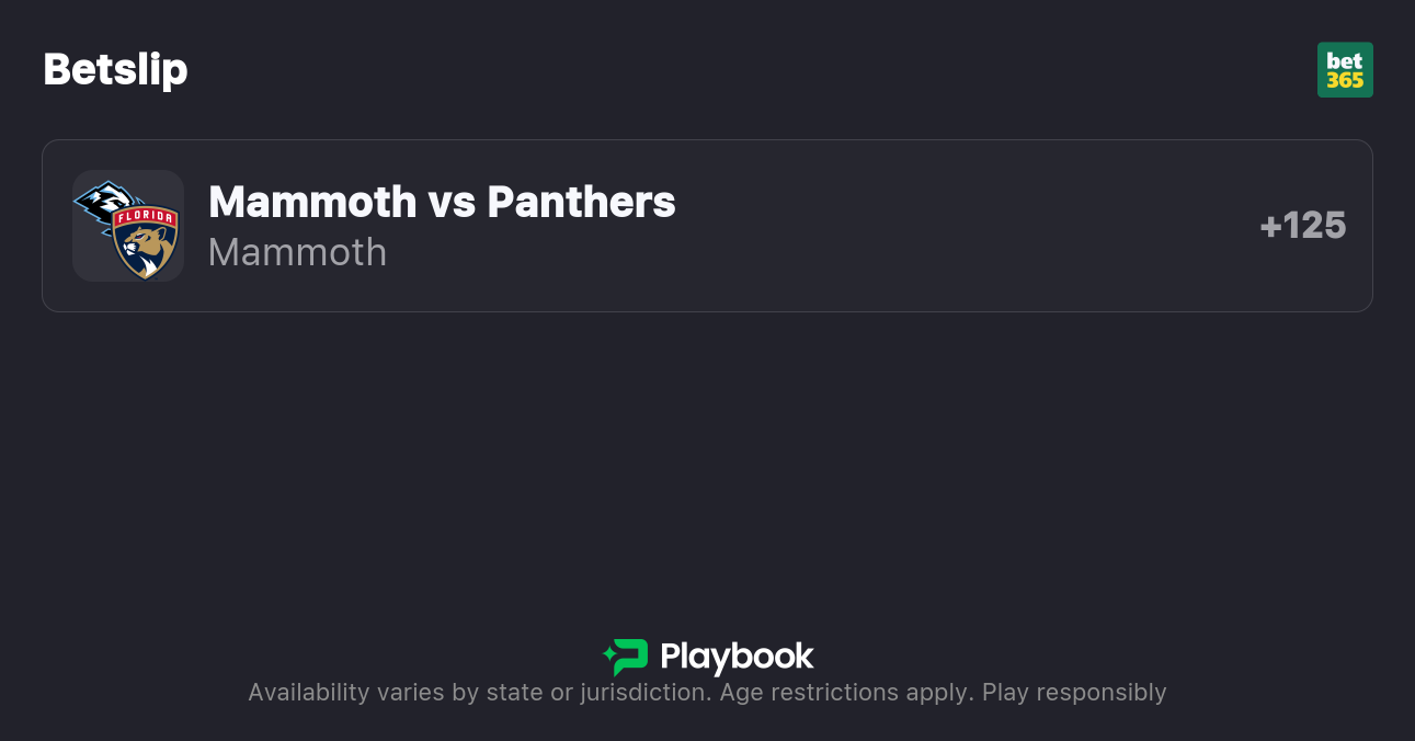 The Panthers are favored by -1.5 on the puck line, with the over/under set at 6.5 (+102o / -124u). The Panthers are a -148 favorite to win outright, while the Mammoth are +124 to pull off the upset.