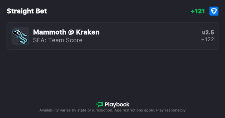 - Mammoth vs. Kraken Over/Under: 6 (-120o / +100u)