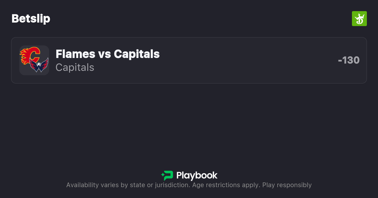 Capitals vs. Flames Moneyline: Capitals -130, Flames +110