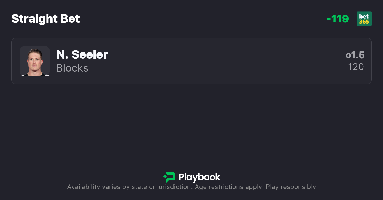 Best Bet: Nick Seeler Over 1.5 Blocks (-120, bet365)