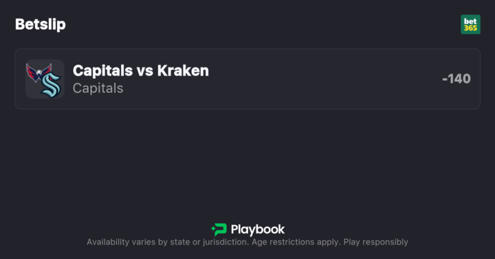 - Capitals vs. Kraken Moneyline: Capitals -140, Kraken +120